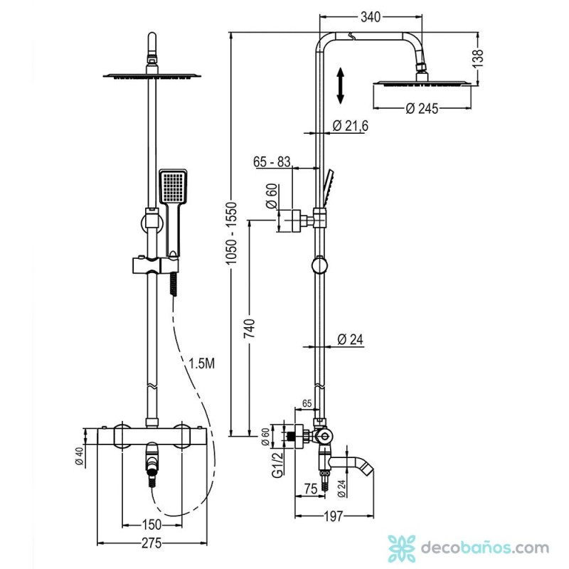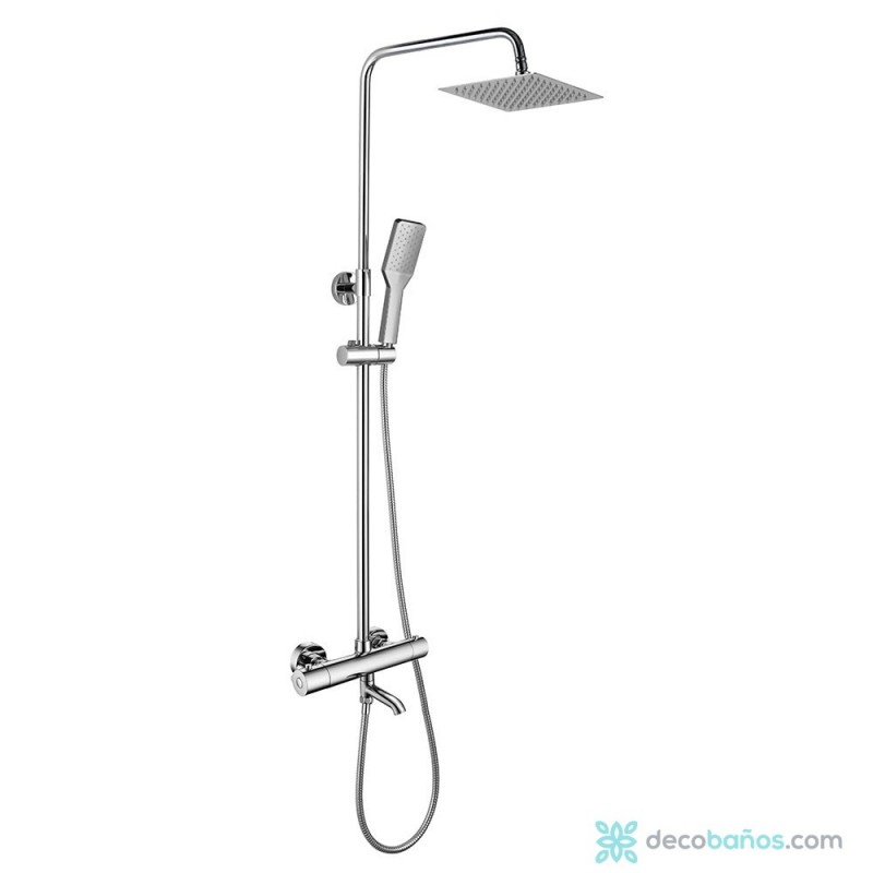Columna de ducha termostática extralarga CON CAÑO Quad. Con tubo redondo extensible de 100 a 150 cm.