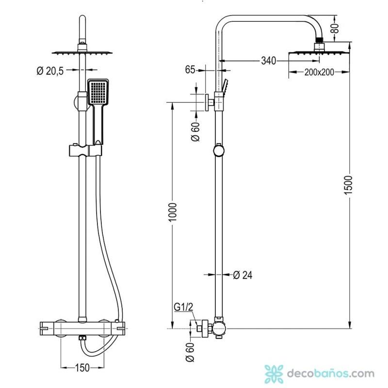 ✔ Diseño ergonómico y adaptable la columna de ducha está especialmente diseñada para ser utilizada por cualquier usuario de forma sencilla y confortable, el tubo redondo telescópico tiene un diámetro de 20 mm, y una extensión extralarga regulable que va desde los 100 a los 150 mm, una medida especialmente indicada para instalaciones con bañera, el tubo también es regulable en profundidad gracias al soporte de pared fabricado en latón, el rociador superior es extraplano, está fabricado en acero, y tiene unas medidas de 20x20 cm, y un ángulo de rotación ajustable de 15 grados